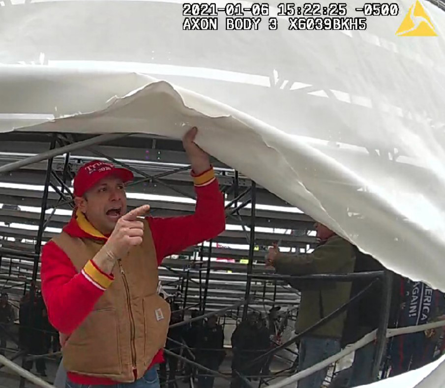 Footage from the Metropolitan Police Department’s body-worn cameras during the Jan. 6, 2021, Capitol breach show Cale Clayton, 41, of Drexel. Clayton was arrested on March 31 for his involvement in the Jan. 6 insurrection.