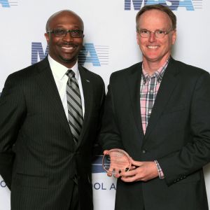 Raymore-Peculiar School District Superintendent Dr. Mike Slagle was among eight Missouri Superintendents recognized by the Missouri Association of School Administrators (MASA) for outstanding performance as an emerging superintendent. Dr. Slagle was nominated by his colleagues in the Greater Kansas City MASA District. He was honored at the MASA Spring Conference on March 23. Each year, the award is presented to superintendents who are in their second or third year of employment as superintendent and have made a measurable contribution to the school district they serve. He is pictured with Dr. Curtis Cain, left, Superintendent of the Wentzville School District and 2022 AASA National Superintendent of the Year.